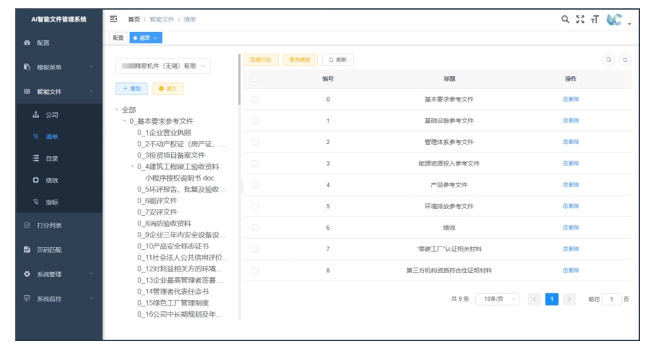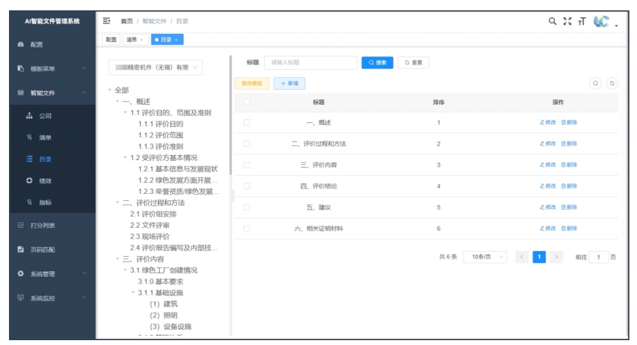 「AI智能文件管理系统」功能强大,企业可以在系统内轻松完善“企业基本信息、文档目录内容、绩效参数、指标答复、指标对应关联附件、附件材料”等,完善结束后系统能按照客户预设的模板格式,自动生成符合要求的word文档——绿色工厂报告。